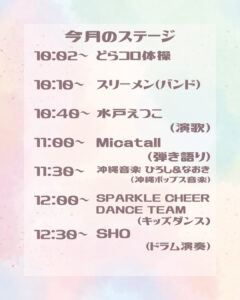 キッズダンス、太鼓の演奏、バンド、吹奏楽、伝統芸能の披露、空手の演舞etc...