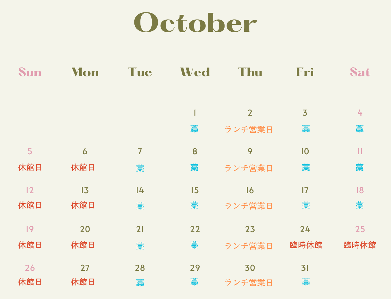 10月24日(金)および 25日(土)は休館とさせていただきます。